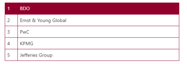 - Most active advisor and accountant globally (PE deals only)