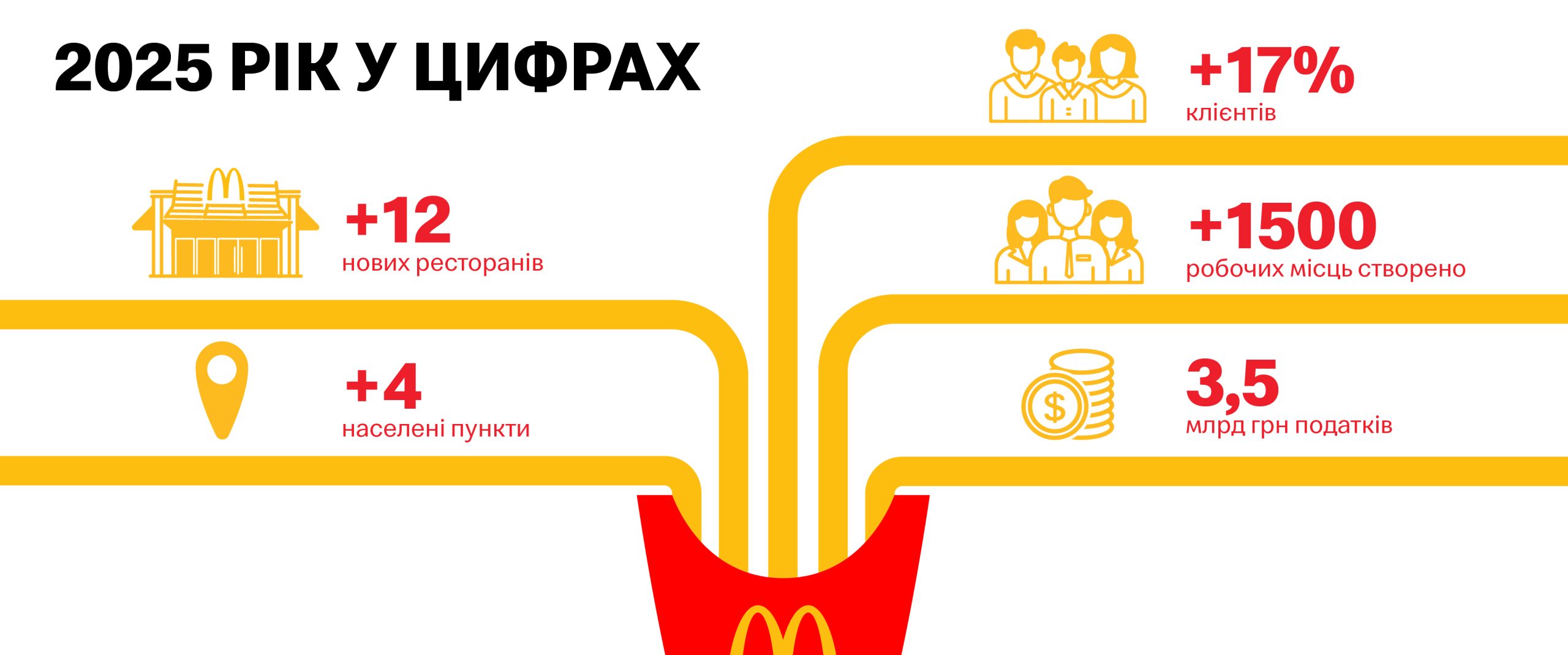 У 2025 році «МакДональдз» в Україні показав стійке зростання та масштабував мережу. Кількість клієнтів зросла на 17%, а податкові відрахування до бюджету — на 34,6%.