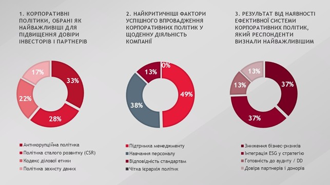Отримані відповіді підтвердили: на перший план виходять питання доброчесності, управління ризиками та інтеграції ESG-підходів у стратегію розвитку.